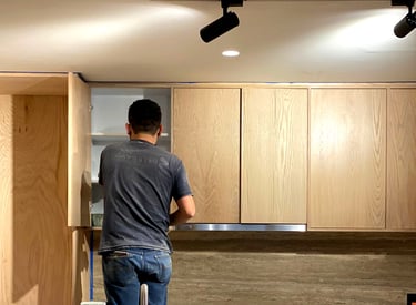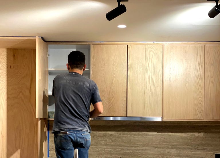 Carpintería integral en vivienda habitada. Tomamos medidas, fabricamos y realizamos la instalación cuidando muros, pisos y acabados existentes.