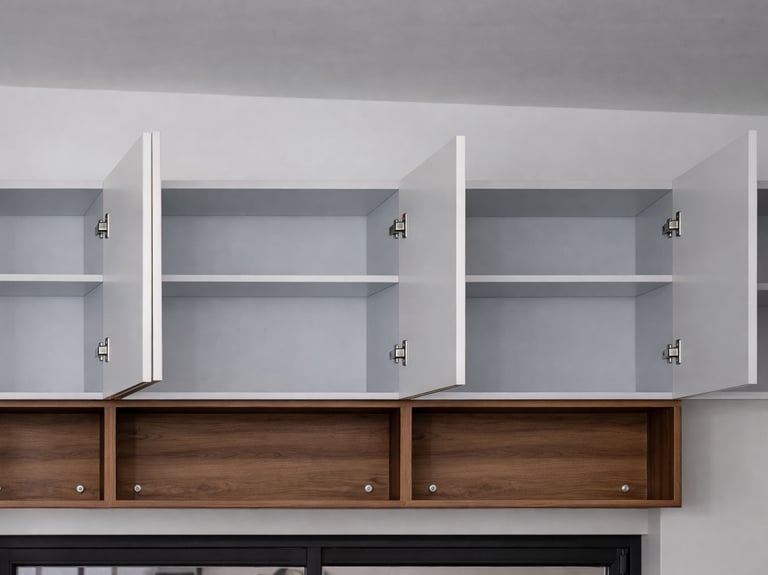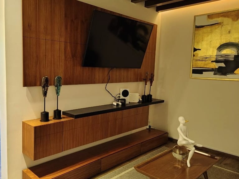 Mobiliario fijo sobre diseño para espacios residenciales y corporativos, listo para integración en sitio.