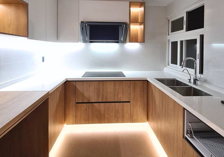 Desarrollo e instalación de cocinas integrales a medida, coordinadas con proyecto arquitectónico y especificaciones de obra.